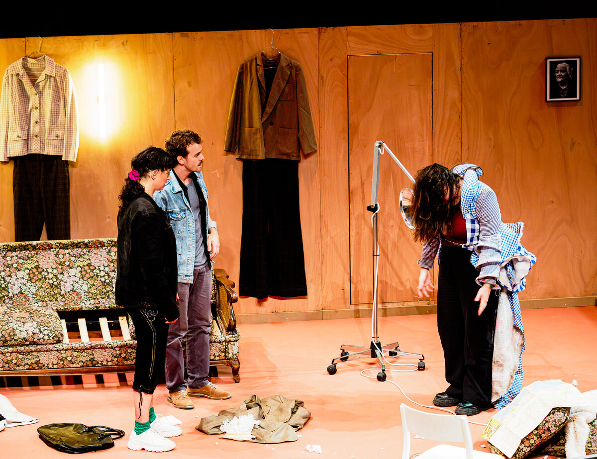 écriture, mise en scène Blanche Adilon-Lonardoni / collaboration artistique Quentin Bardou / jeu Quentin Bardou (en alternance avec Simon Anglès), Mélina Martin, Camille Soulerin / création lumière Juliette Romens / régie lumière Lucien Laborderie / création sonore Maël Fusillier / création costume Marion Montel / scénographie Blanche Adilon-Lonardoni, Quentin Bardou / regard chorégraphique Maxime Aubert